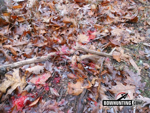 The following week, I filled my second archery tag on another mountain whitetail. This particular buck was caught cruising through one of my favorite hunting spots. What makes it so special is that it is located in a ridge top saddle, next to a bedding thicket, and is loaded with oak trees that drop acorns like rain. When the rut is on, or any time of year for that matter, it is dynamite spot to arrow a deer. Also, it should be noted that this buck was shot with the same NAP Thunderhead Razor that I took my first buck with. After simply re-sharpening the blades, the broadhead was just as deadly as it was the day it came out of the package. But don’t take my word for it. See the blood trail below and decide for yourself.